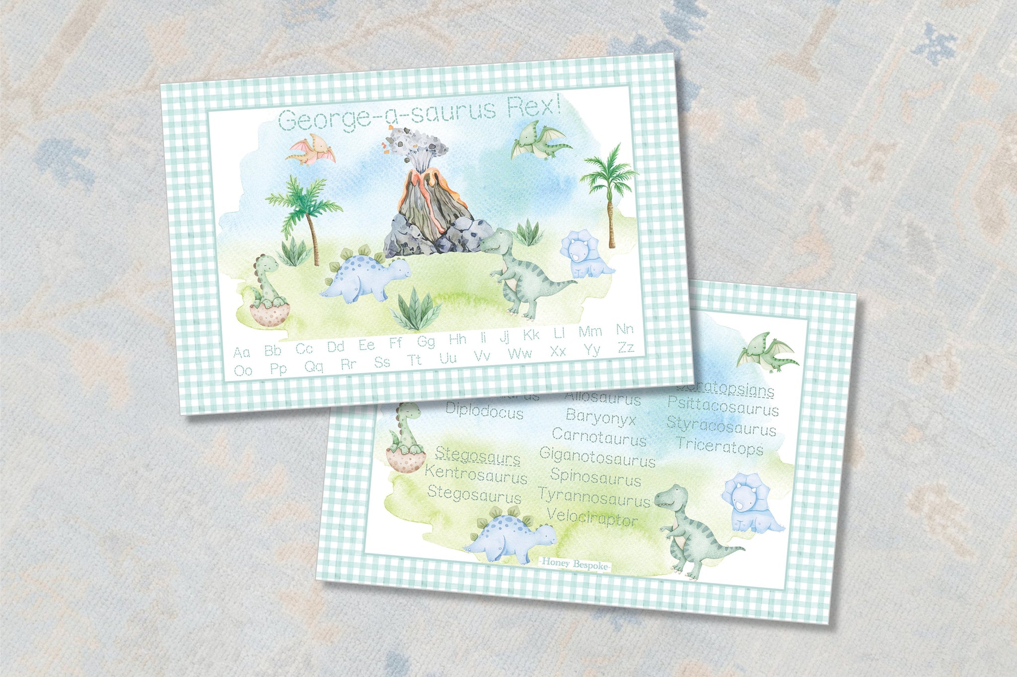 Bring a playful touch to mealtime with this custom placemat designed especially for kids who love dinosaurs. Perfect for a dinosaur theme party or as an educational placemat, it combines fun and function in one vibrant design. Crafted to be both durable and easy to clean, this kids placemat adds a splash of prehistoric charm to any table.