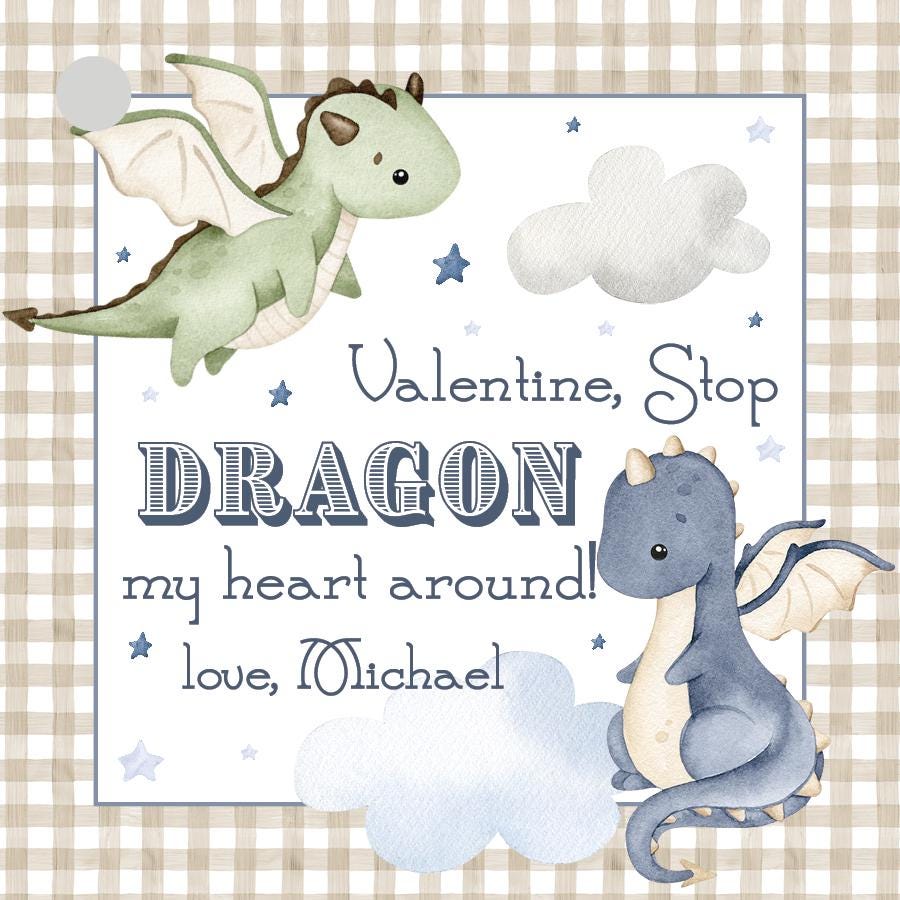 Dragon Valentine Gift Tags in a classic preppy gingham style—perfect classroom valentines for kids (and especially boys!) who love dragons and knights! Personalize with a name for valentine treat tags on cookie bags, party favors, or school handouts, and you can also order this as a digital file to print at home!