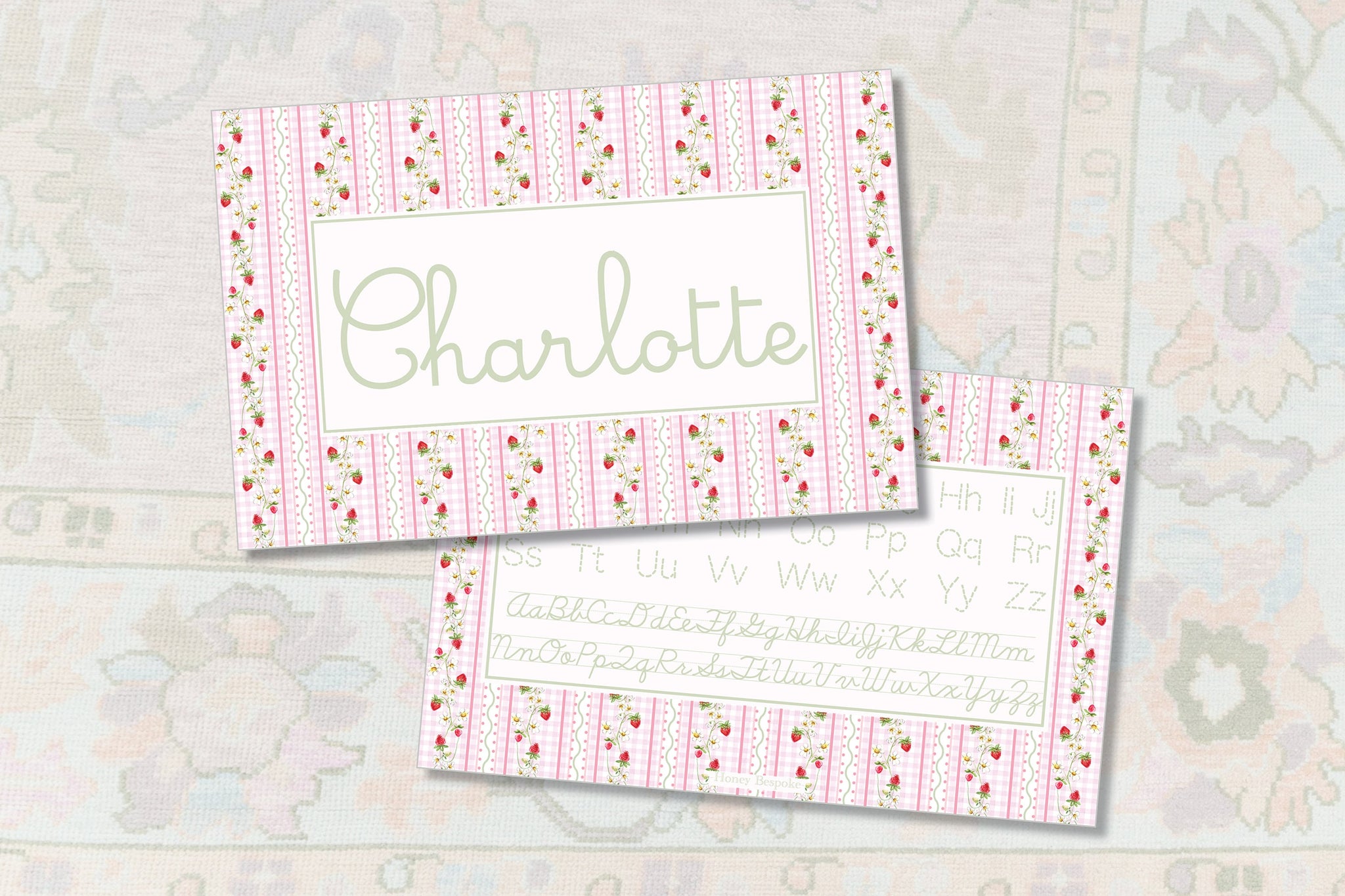 Make mealtime a little sweeter with this personalized laminated placemat featuring a classic pink strawberry design and your child’s custom name! It’s a wipe-clean kids placemat that’s perfect for everyday use at home, preschool, or on-the-go—adorable, practical, and giftable!